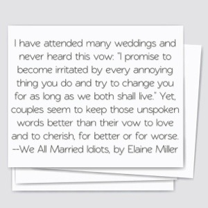 2. What book are you currently reading? I am in the process of reading through the Bible again. I often pick up the devotional, Jesus Calling and I just started reading the book, We All Married Idiots by Elaine Miller.