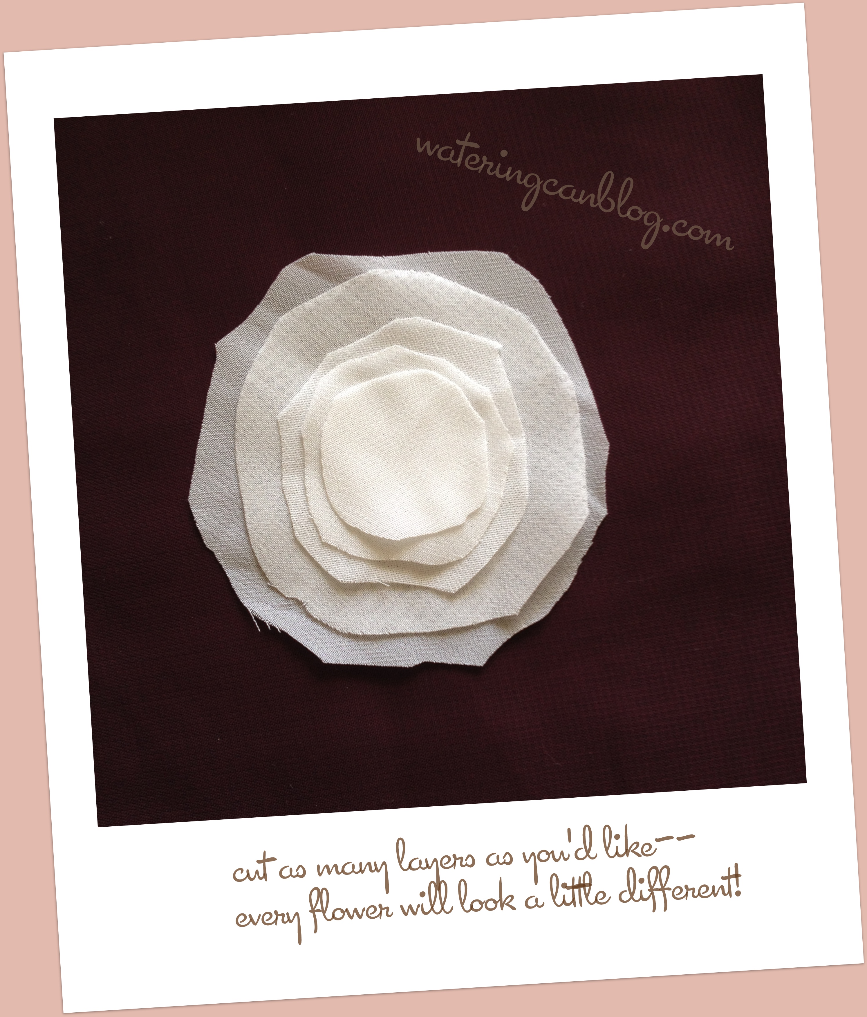 Layer the petals inside each other and tack the layers together. Add embellishments and attach to a barrette, pin or headband… or a whatever you’d like!