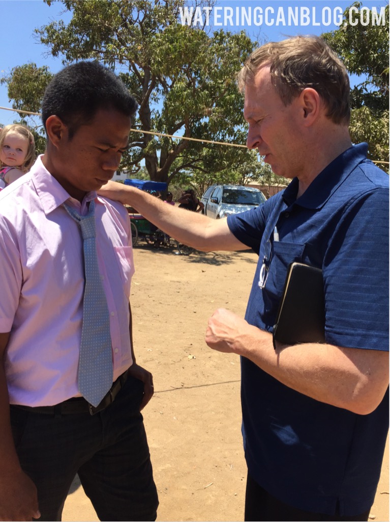 Pastor Doug praying with a young man called to ministry.   Toliara, Madagascar