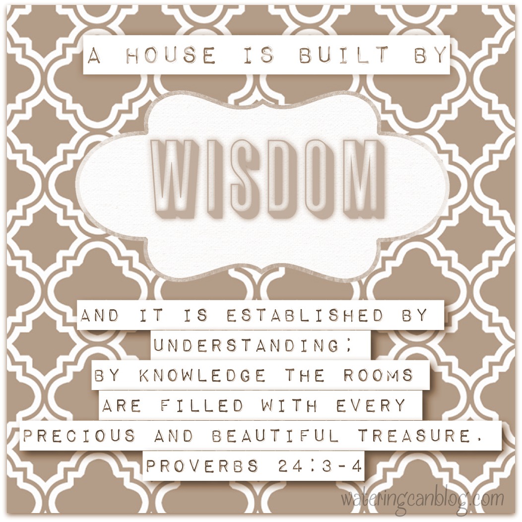 I really don’t think there is a lot of significance in the fact that wisdom is called a she, but as a woman, I have to admit that I am much more confident with GOD as my Heavenly FATHER, and with His plan regarding the roles of men and women. Call me old-fashioned, but I believe that God created men to be the leaders of our homes, our churches and our government… (WOAH–Hold on there, coach–I am not trying to start a controversy here, I’m just stating my position.) That position has served me well in my relationship with God and with my husband, and it’s the place I am most comfortable, and I am not apologizing nor am I passing judgement.