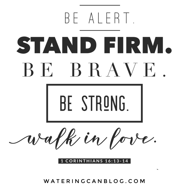 **For those of you that have stuck with me in the Scripture Memory Challenge, 1 Corinthians 16:13-14 is the verse I chose to memorize–won’t you join me!