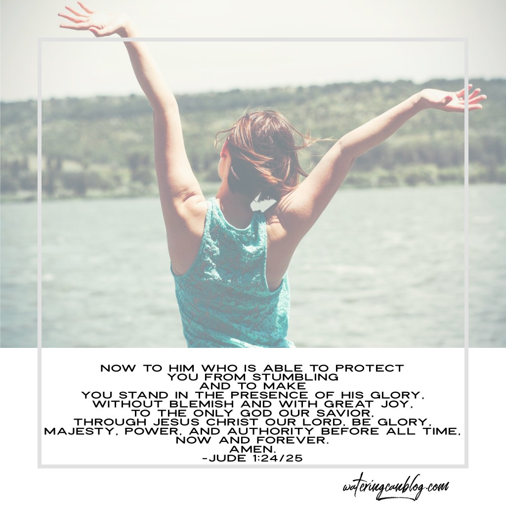 Nearing the end of my Blogging Through The Bible series, I’ve chosen to memorize Jude 1:24-25 and would love to hear if you are challenged to memorize it as well! Be encouraged, friend. This is a sad story, but God’s story is very different. He offers you love and joy and peace. He takes a sad song and makes it better! (You might wanna go back and play that video again!)