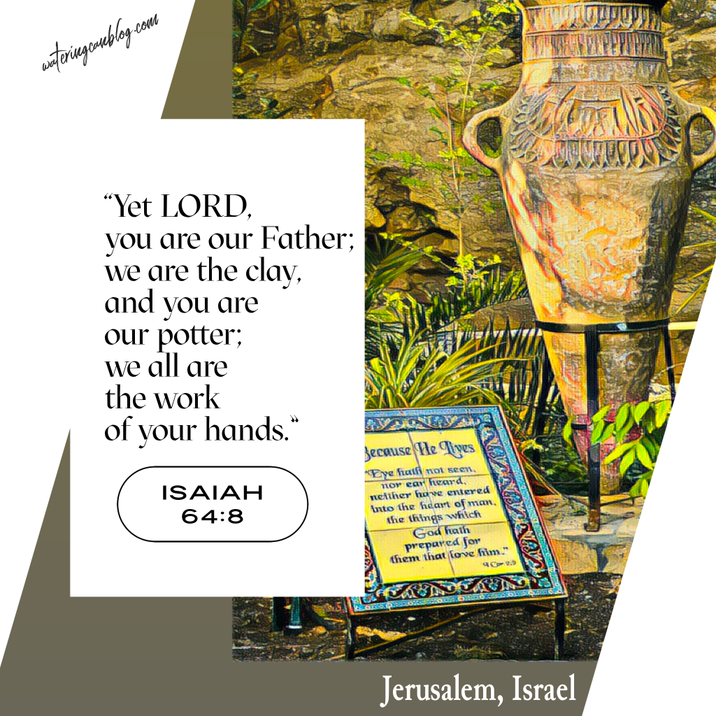 In this photo I took while visiting the Garden Tomb in Jerusalem, you can see a small mosaic just below the pottery. You might not be able to read the small print, but it reads: