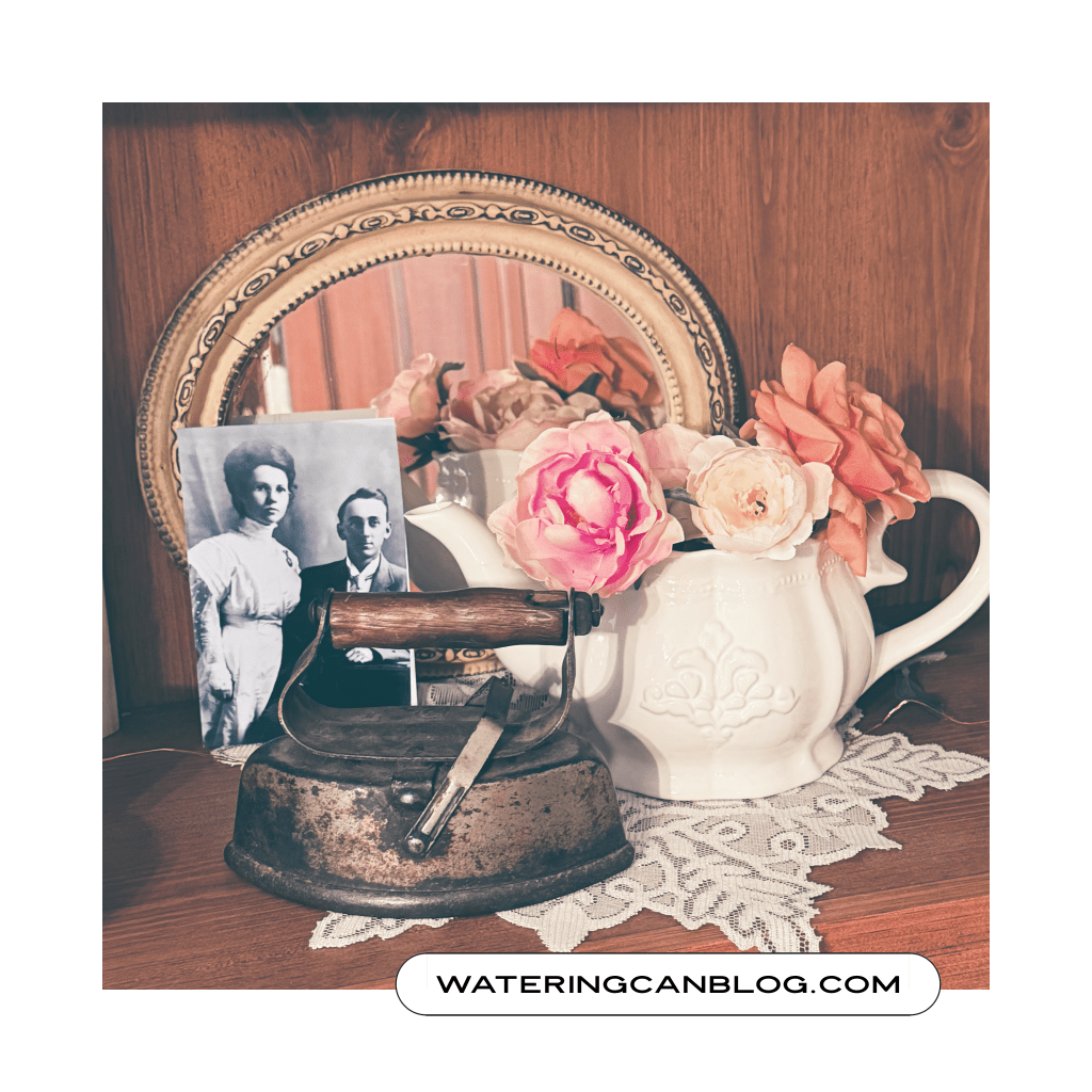 I have in my possession an old iron that belonged to my husband’s grandmother. It is so heavy that I actually weighed it–6 pounds! The women of previous generations not only had to iron with a heavy iron that was heated over a wood burning stove, the clothing they were pressing had first been washed by hand and then wrung out piece by piece before hanging them to dry. They definitely had some serious wrinkles– and I’m just betting grandma’s hands were much stronger than mine!